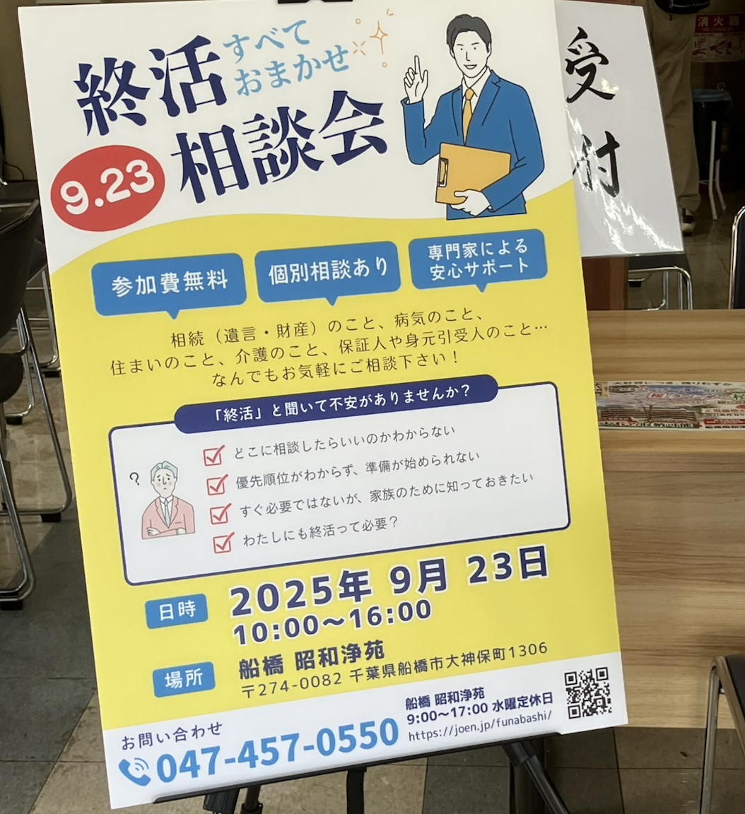 9月23日、船橋の昭和浄苑で開催された「終活すべておまかせ相談会」に参加いたしました。