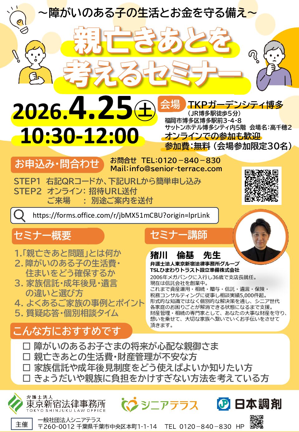 ~ 障がいのある子の生活とお金を守る備え ~ 親亡きあとを考えるセミナー【福岡開催】